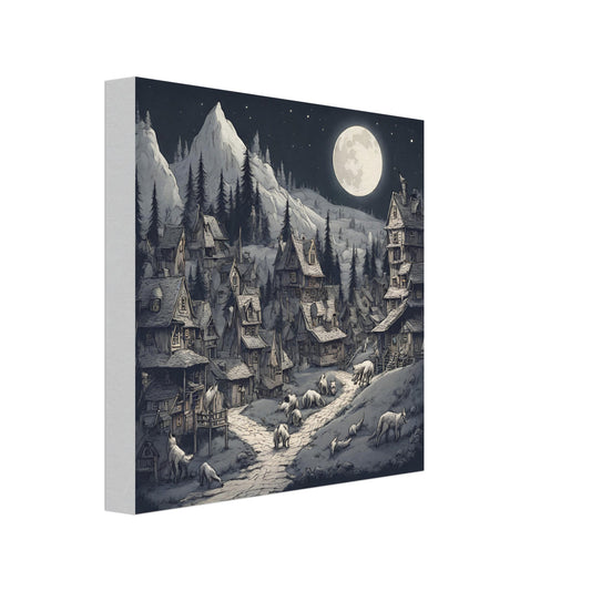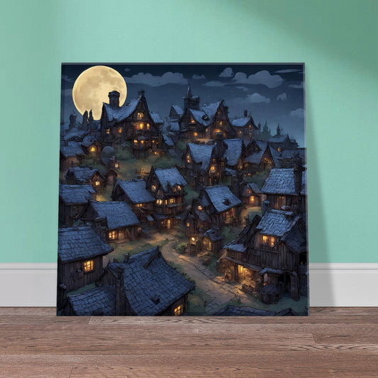 Grey Moon Village, Canvas 20x20 cm / 8x8″