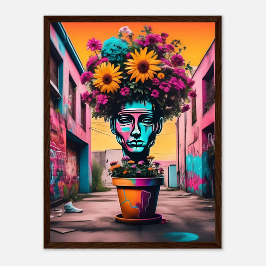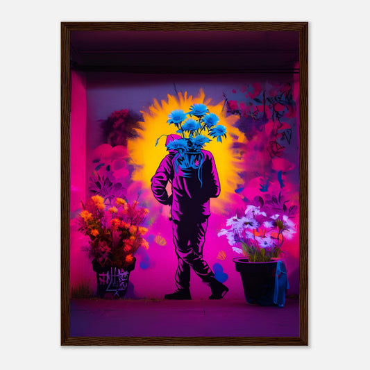 Neon Flowers, Premium Matte Paper Wooden Framed Poster 30x40 cm / 12x16″
