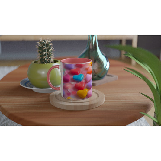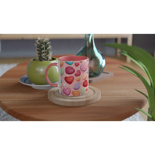 Candy Hearts, 11oz Ceramic Mug Ceramic Pink